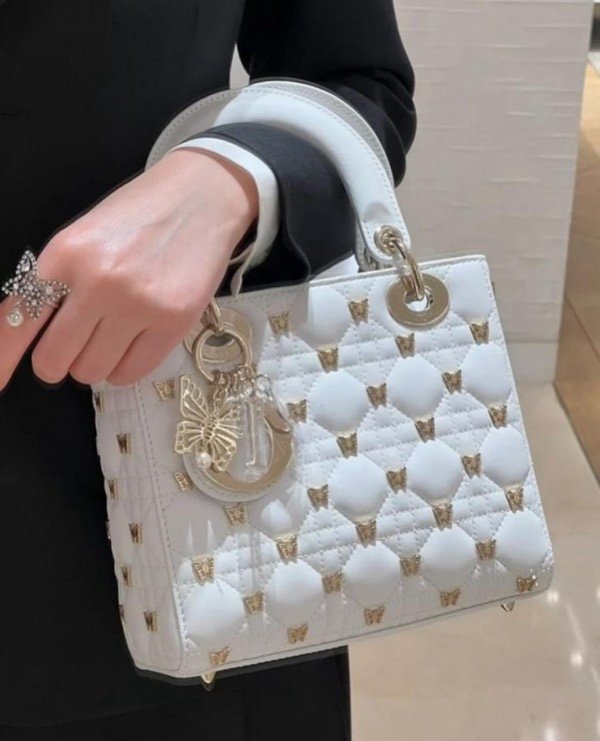 Dior Lady My ABC Cannage Butterfly Premium Quality With OG Box & Dus Bag (White-712)(BSB)