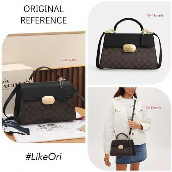 Coach Eliza Top Handle Premium Crossbody Bag With OG Magnetic Gift Box & Dust Bag (Black_Brown-913)(BSB)