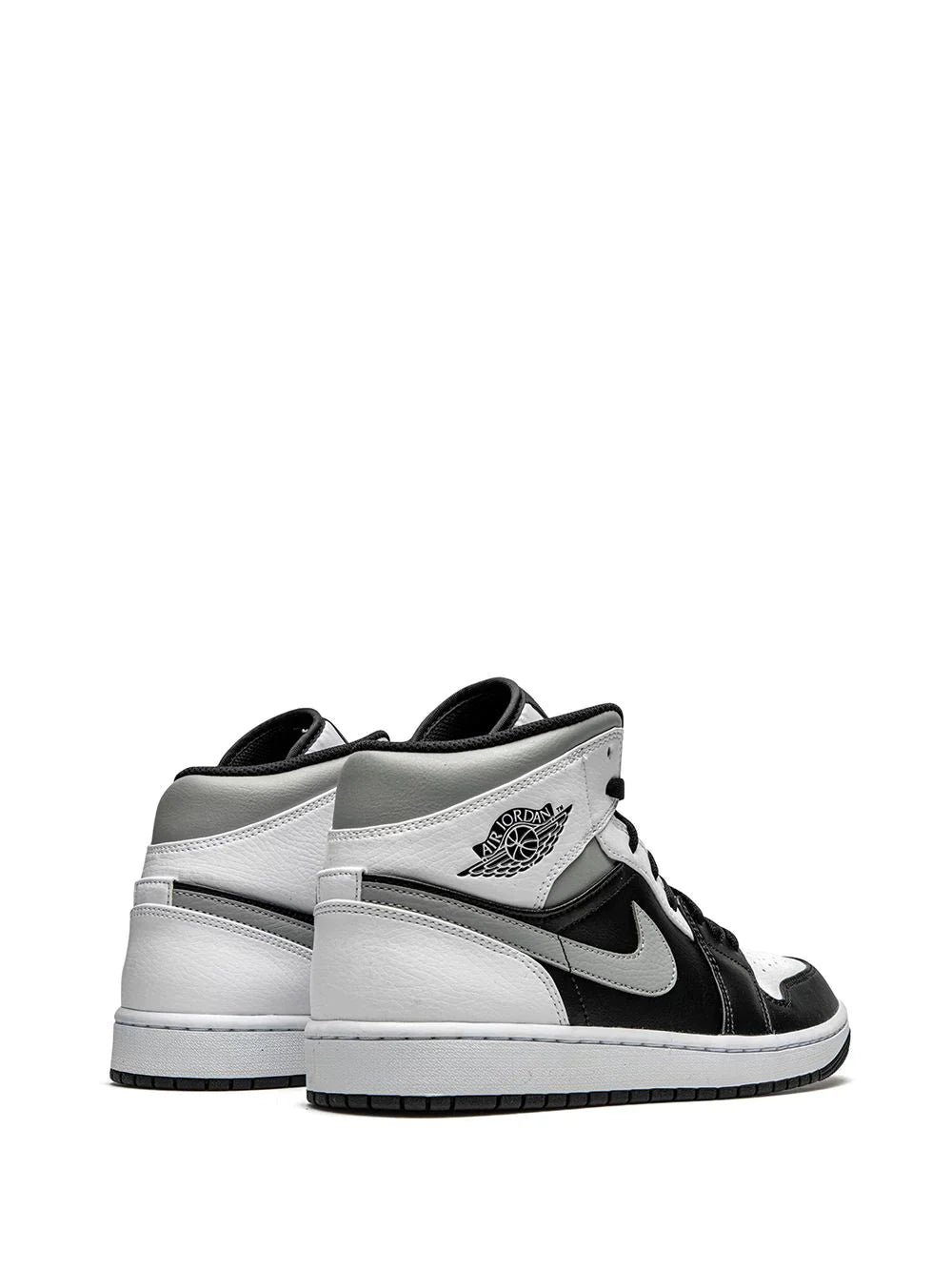 Treat your feet to the best. These white and black leather Air Jordan 1 Mid sneakers from Jordan offer a timeless silhouette, ready to take on the day with style.