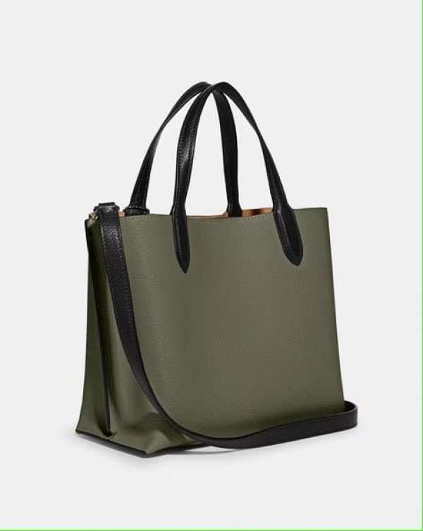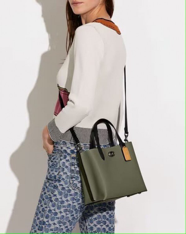 Coach Willow Leather Tote 24 In Colorblock Olive Green With Shoulder Strap & Dust Bag 8561(LB)